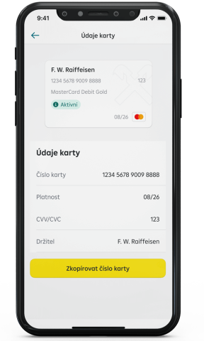 V detailu karty si nyní uživatelé budou moci zobrazit celé číslo karty, její expiraci i CVV/CVC kód, tedy informace potřebné pro platby na internetu. Zneužití se klienti bát nemusí, údaje z karty se zobrazí až po zadání správného S-PINu.